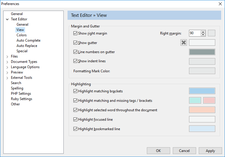 Der Text-Editor bietet Ihnen Zeilenumbruch, Syntax-Hervorhebung, korrespondierende Klammer, Lesezeichen, uneingeschränktes Rückgängigmachen/Wiederholen, Code-Faltung und alles Weitere, das Sie brauchen.