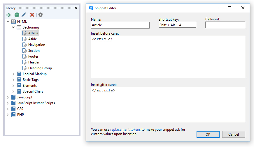 Sparen Sie sich mühsame Tipparbeit und verwenden Sie Emmet Auto-Ersetzen. Es gibt mehrere hundert vordefinierter HTML- und CSS-Vorlagen und Sie können leicht Ihre eigenen erstellen.