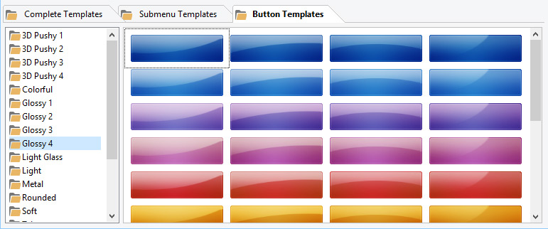 Hundreds of very cool button and menu design templates are included. This image demonstrates just a few samples from hundreds of included and millions of possible combinations.