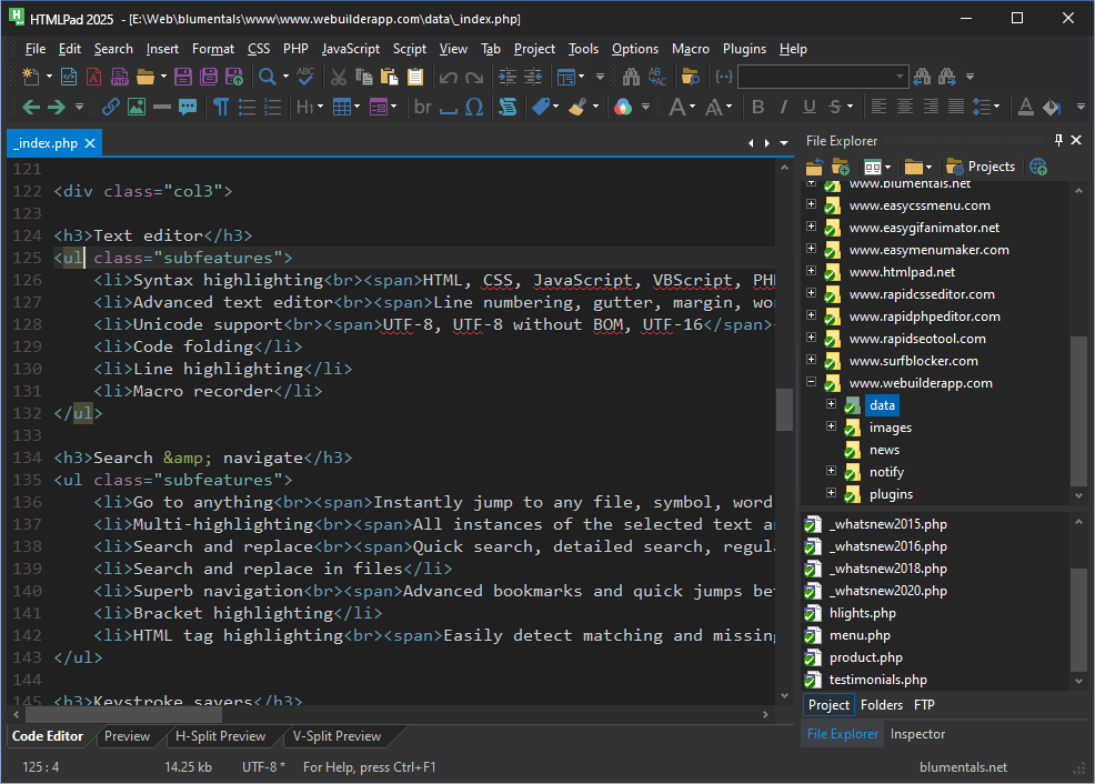 HTMLPad provides clean, familiar and fully customizable interface for different needs. You can save and load different layouts in a snap. Now you can also switch between modern and classic interface style.