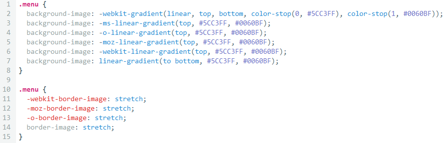 The built-in CSS prefixizer will intelligently parse your CSS code and update it to be compatible with modern and older but popular web browsers.