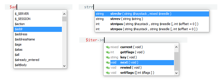 PHP auto complete (or code intelligence) supports: