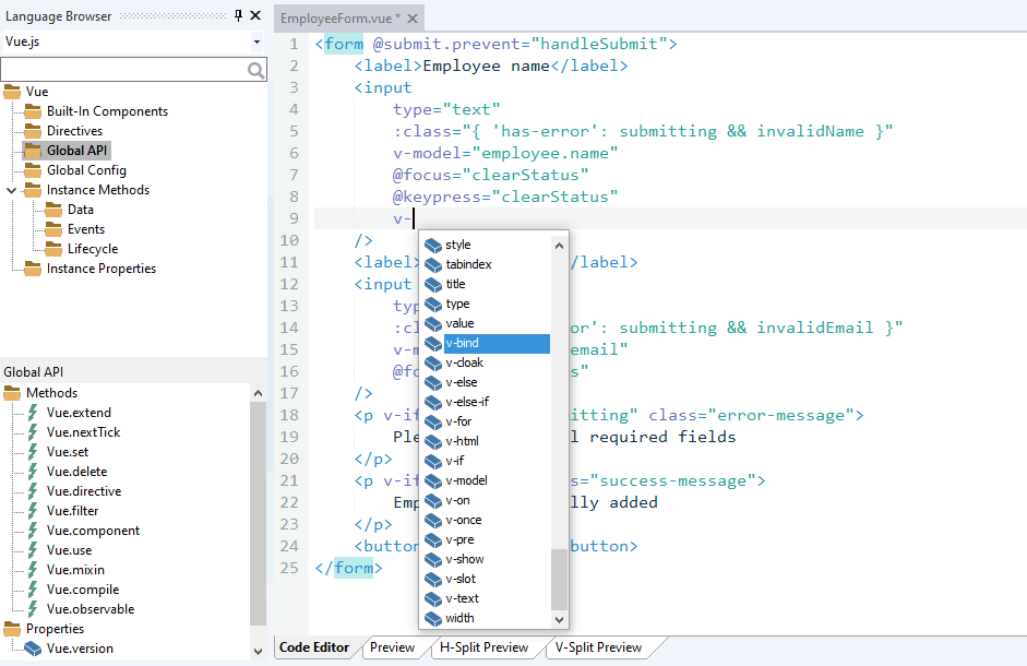 Support for the Vue.js framework - Vue.js syntax highlighting, Auto Complete and more.